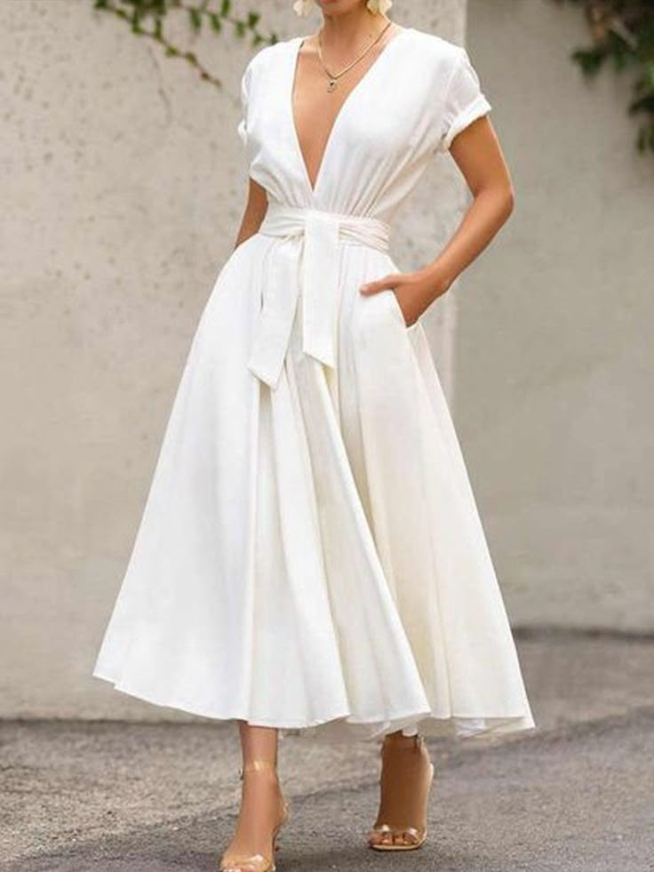If you want to show your smooth sun-kissed shoulders and sexy back, then a halter neck dress is the one for you. This timeless dress is perfect to show your elegance, delicacy, and femininity. Opt for small floral prints for day events and go for solid colors for night events.